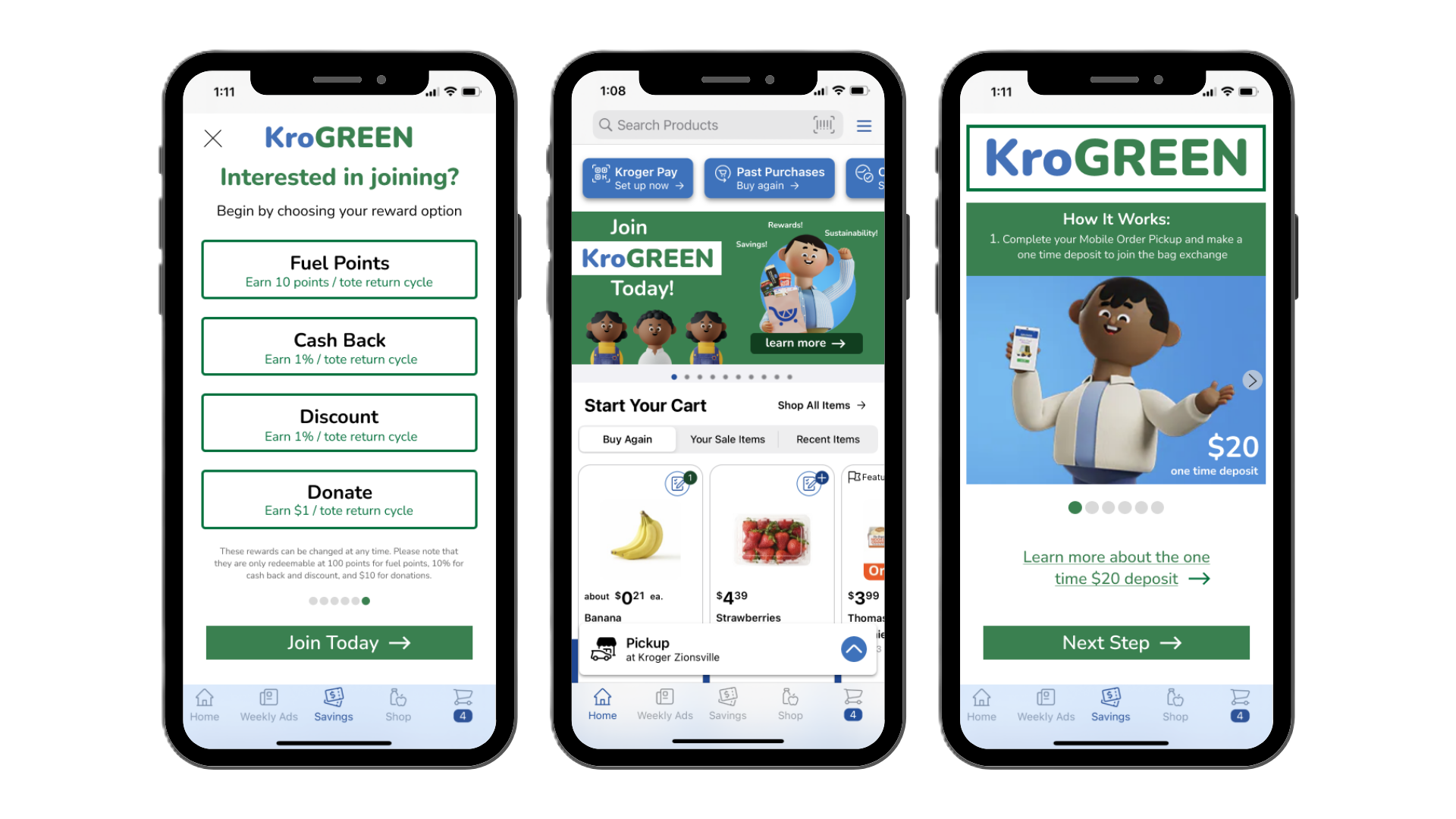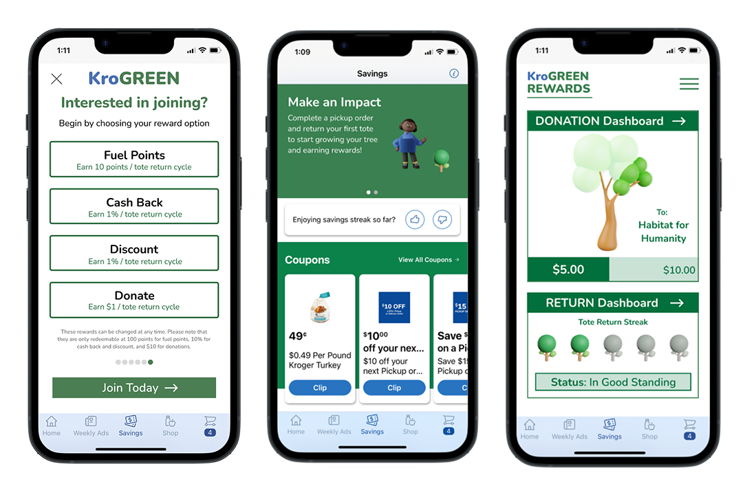 Kroger aimed to advance its sustainability goals through the introduction of a reusable tote program integrated into its curbside pickup service. While the digital ordering experience was well established, sustainable participation was not embedded into the customer journey. There was no clear prompt, incentive structure, or operational framework supporting tote adoption and return.